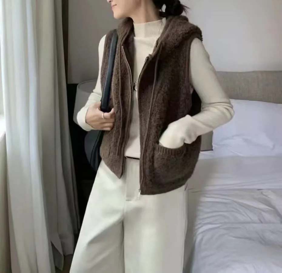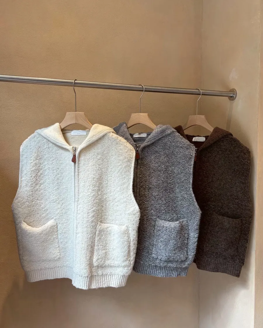 毛毛拉鏈連帽背心|lat