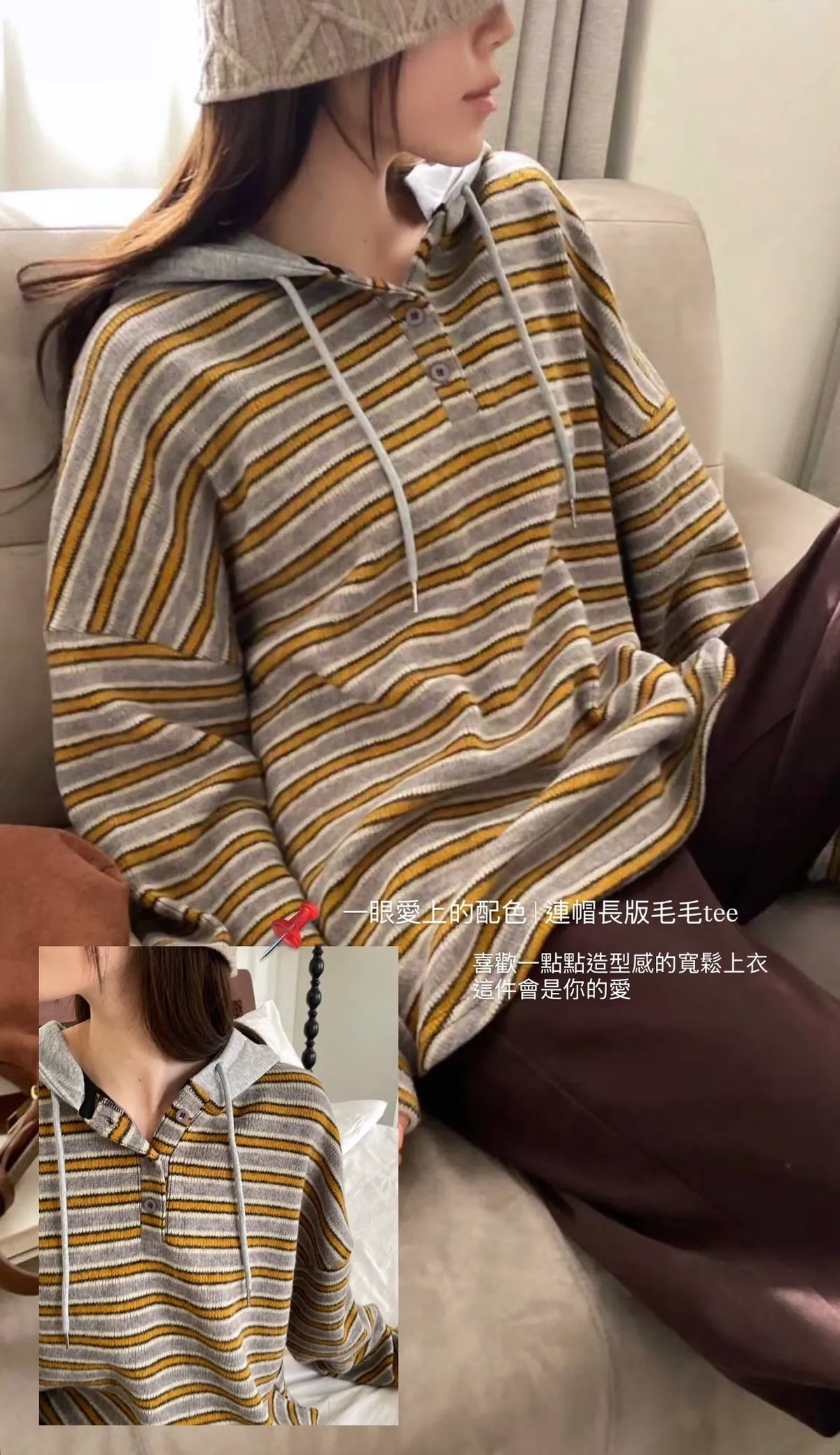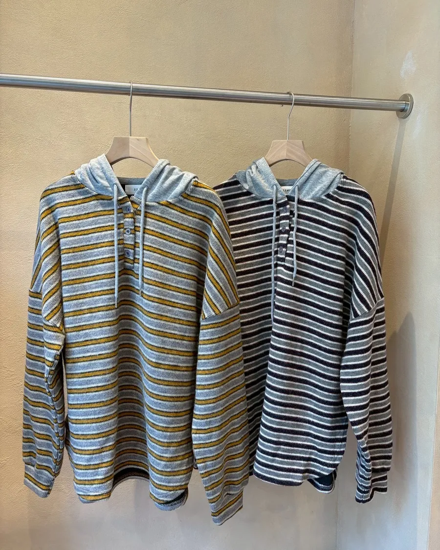 細絨條紋連帽針織衫|lat