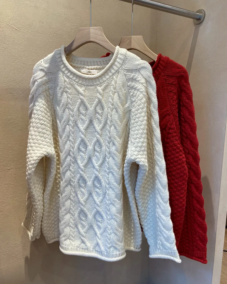 麻花編織長版針織衫|ha