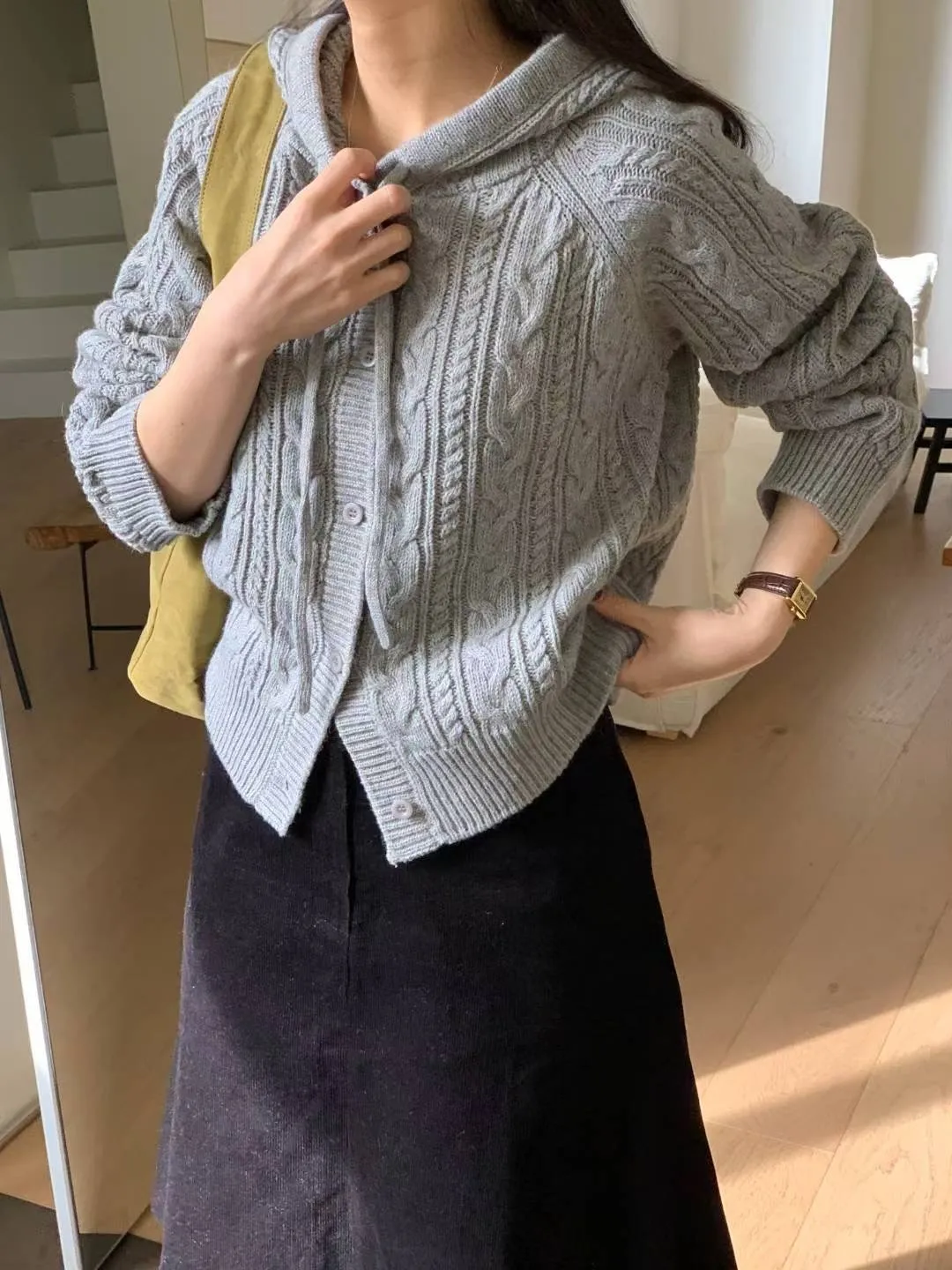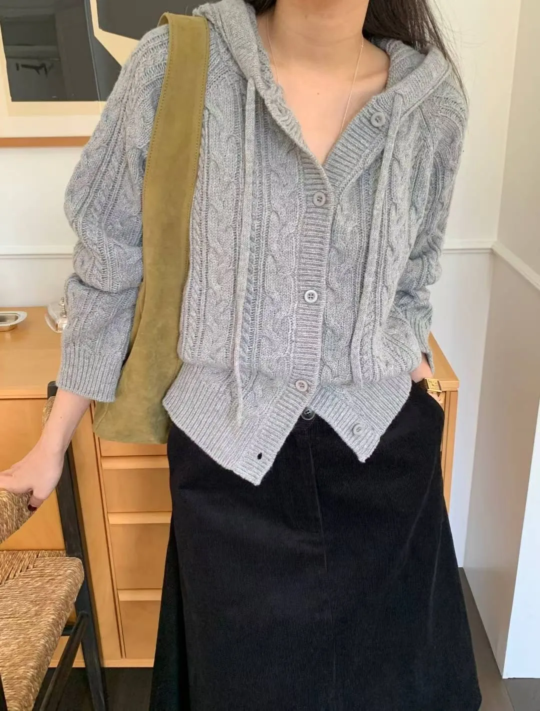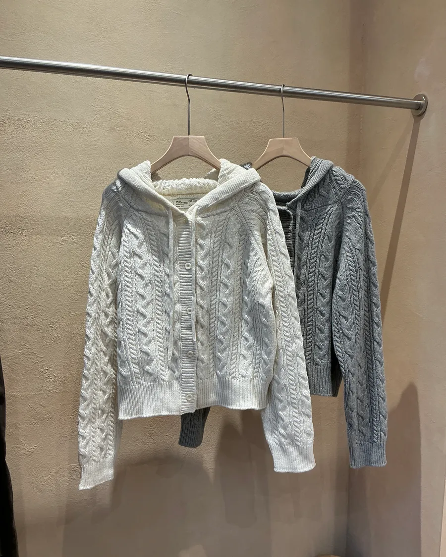 麻花編織連帽針織衫|are