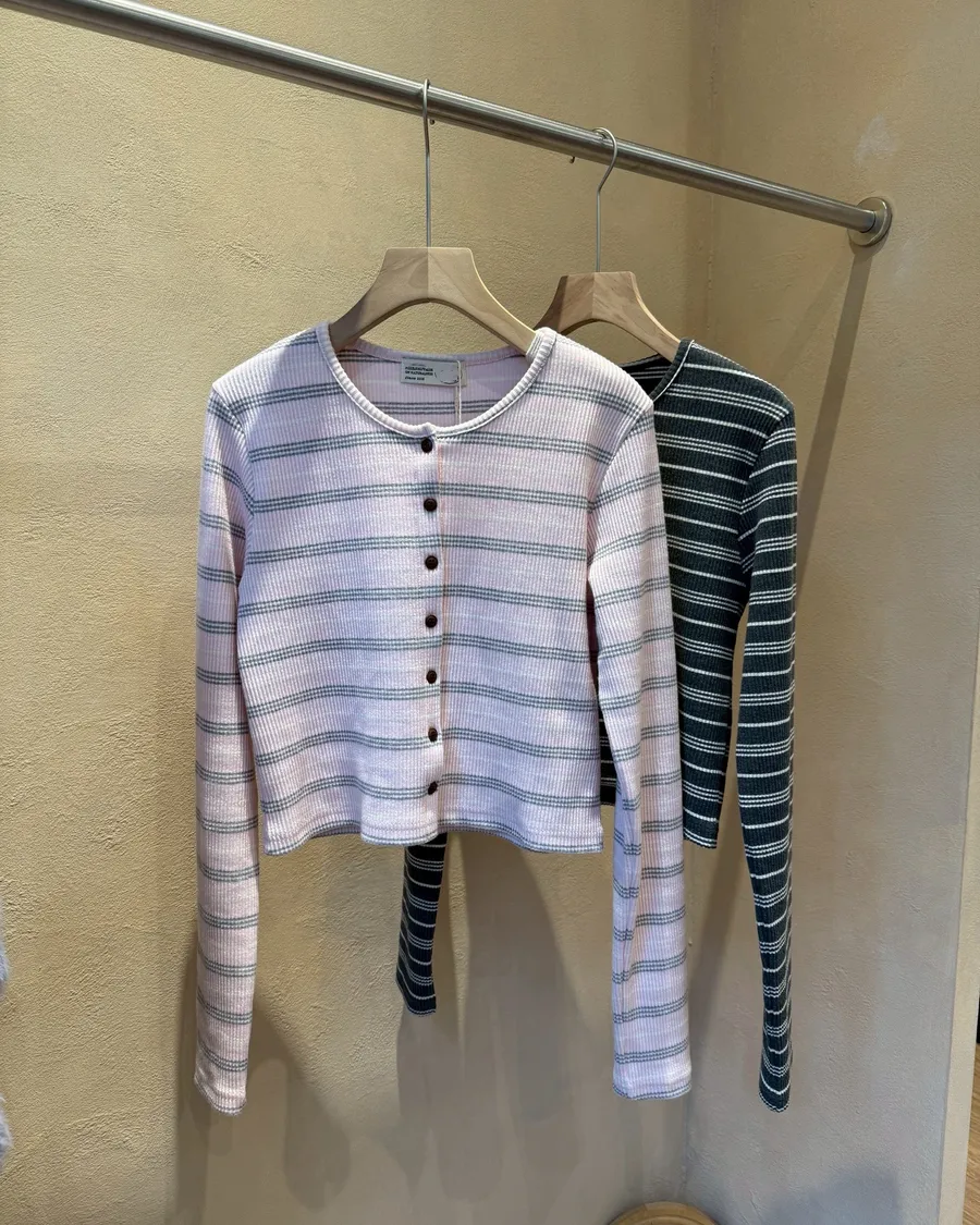 條紋彈力鈕扣薄針織|are