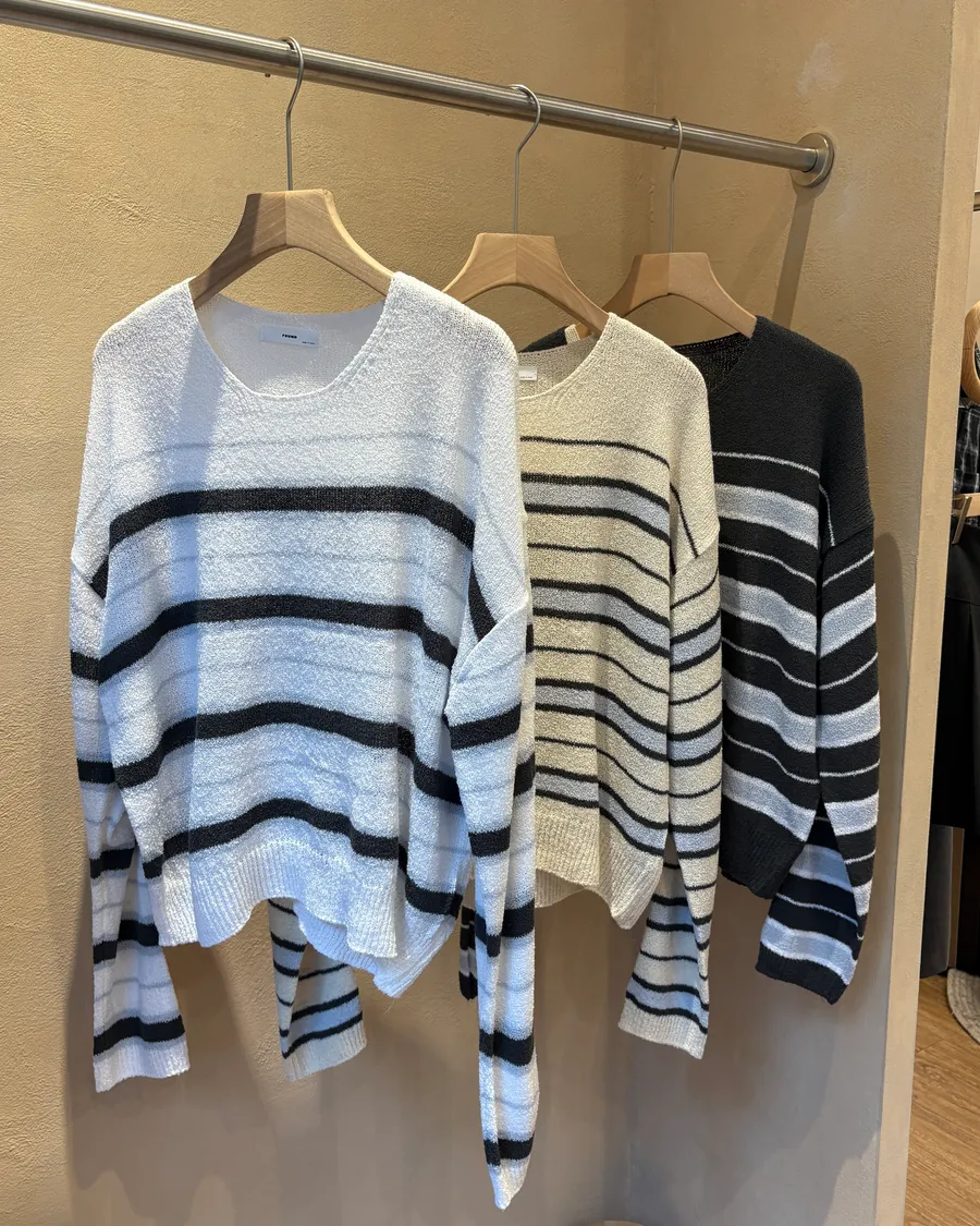 條紋圓領毛巾針織衫|fou